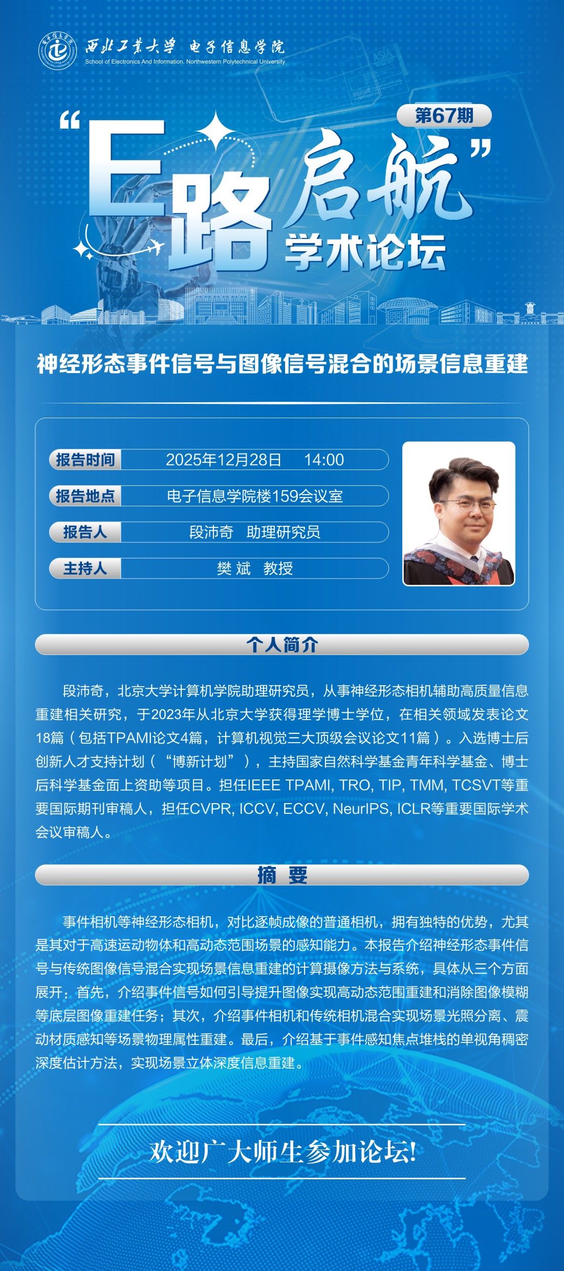 “E路启航”学术论坛第67期——神经形态事件信号与图像信号混合的场景信息重建